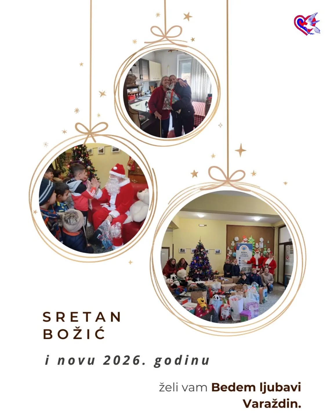 I ovaj je prosinac obilježen aktivnostima kojima nastojimo uljepšati božićne blagdane što većem broju pojedinaca i obitelji, posebice onim najmlađima. Tako ni ovaj put nisu izostali progodni pokloni za stare i nemoćne, kao i susret Djeda Mraza s djecom naših korisnika. Najsrdačnije zahvaljujemo poduzećima KONTO.d.o.o iz Požege te KB Sračinec te Wolfgangu Taubmannu iz NJemačko-hrvatske zajednice iz Koblenza na donacijama, a posebno učenicima i nastavnicima 3. osnovne škole Varaždin koji su prikupili mnoštvo lijepih i korisnih darova za svoje vršnjake u akciji “Mali dar,veliko srce - snaga zajedništva za mentalno zdravlje”.